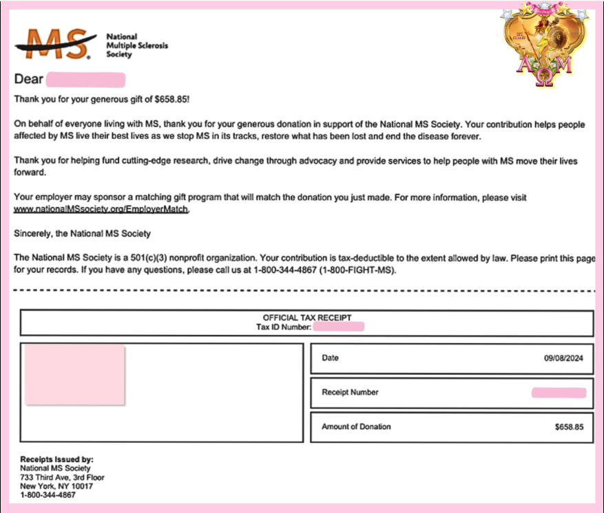 At Alpha Omega Mu, Inc., we believe in making a difference and uplifting our communities. That's why we are proud supporters of the National Multiple Sclerosis (MS) Society.